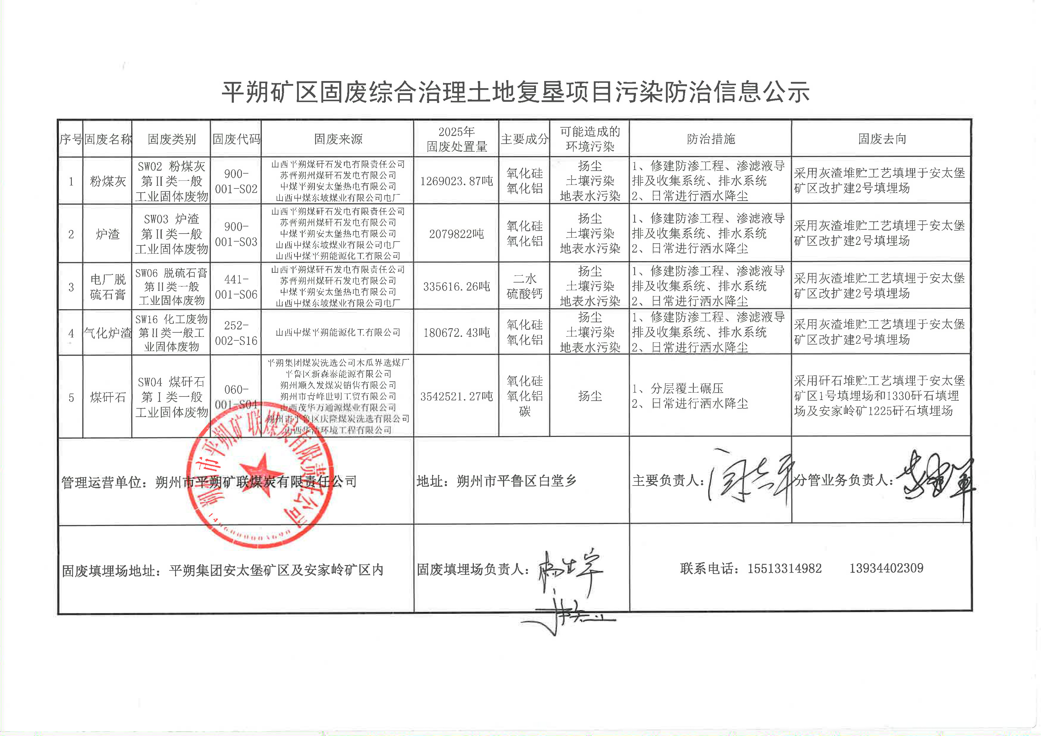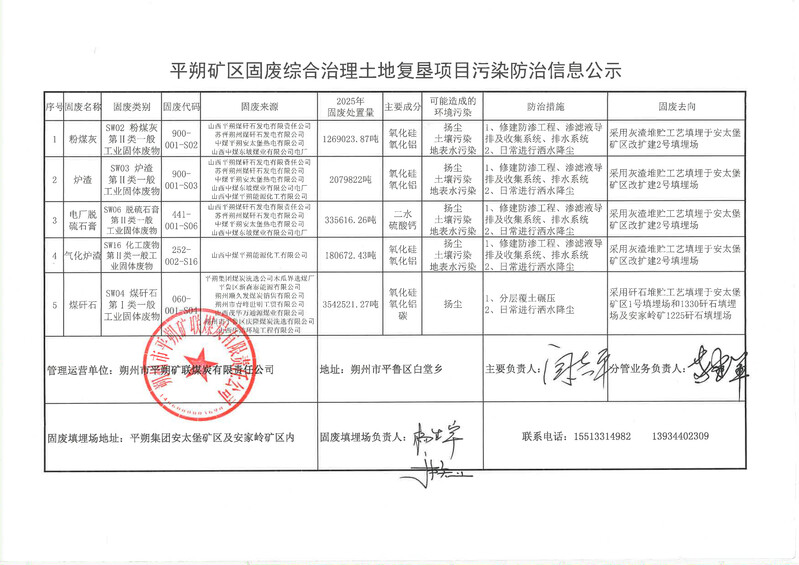 平朔矿区固废综合治理土地复垦项目污染防治信息公示